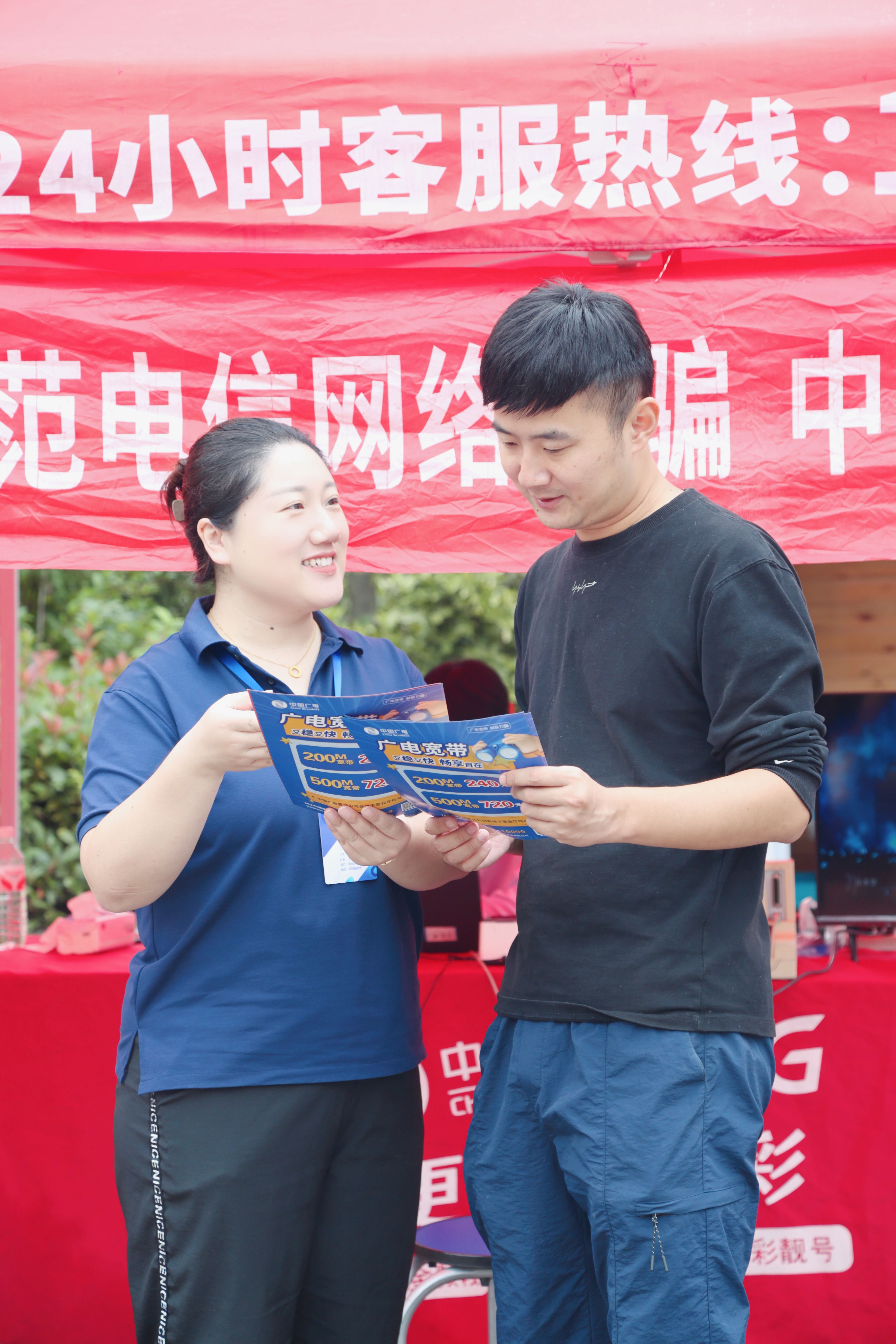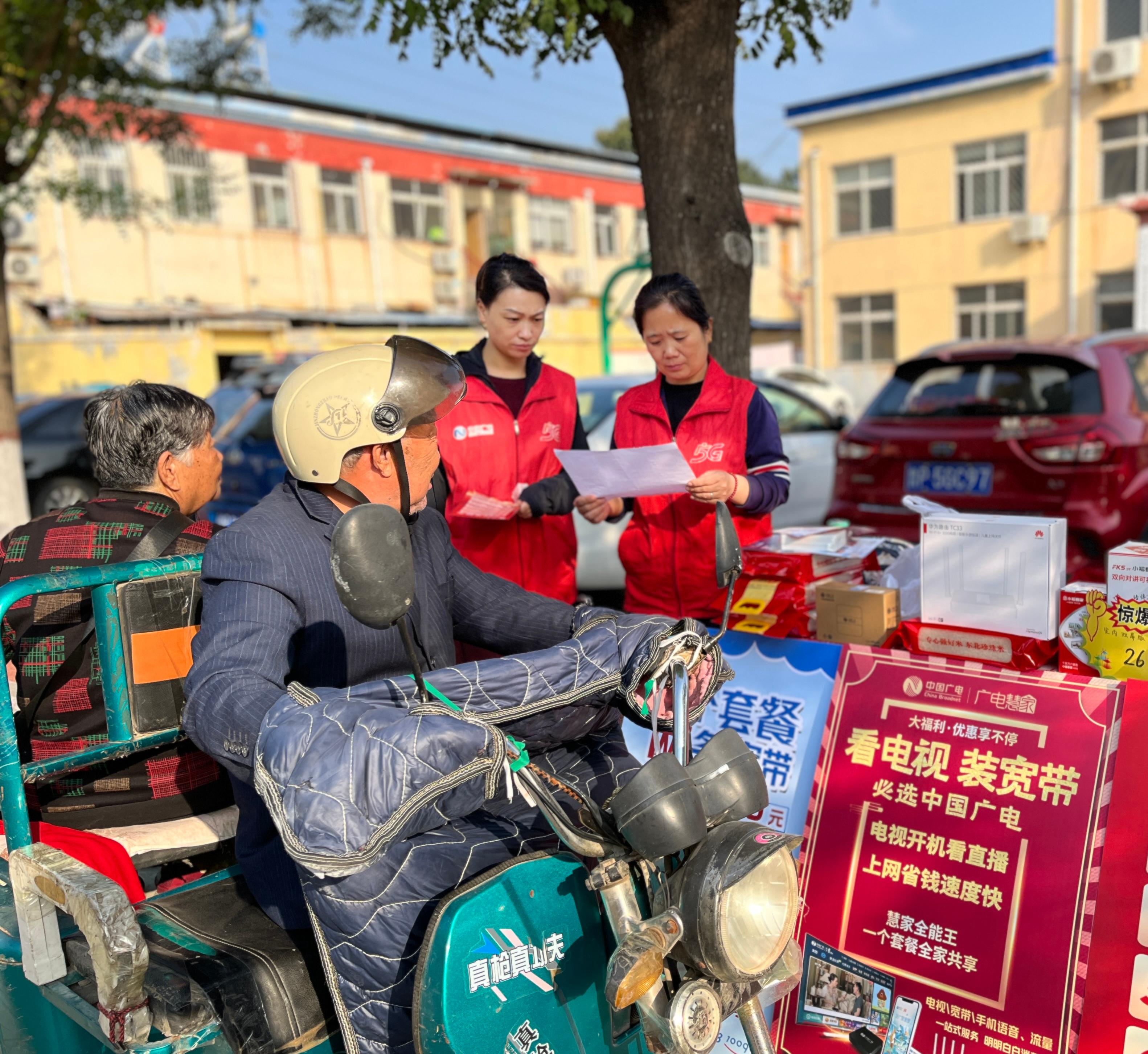 假期期間,聊城東阿縣分公司組織工作人員深入社區(qū)村莊,將廣電服務(wù)送到用戶身邊。圖為工作人員曹麗娟(右一)、黃文靜(右二)在新城街道張漢吳小區(qū)地推現(xiàn)場(chǎng),為過路居民介紹超高清業(yè)務(wù)。