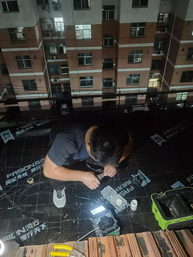 10月5日晚,德州夏津分公司技術(shù)部楊彩鵬與運(yùn)維人員馮寧,針對(duì)用戶報(bào)修需求開展上門維修工作。經(jīng)現(xiàn)場(chǎng)排查,故障原因確定為樓頂光纖斷裂。為最大程度減少對(duì)用戶正常上網(wǎng)的影響,二人不顧降雨天氣,第一時(shí)間開展緊急搶修。