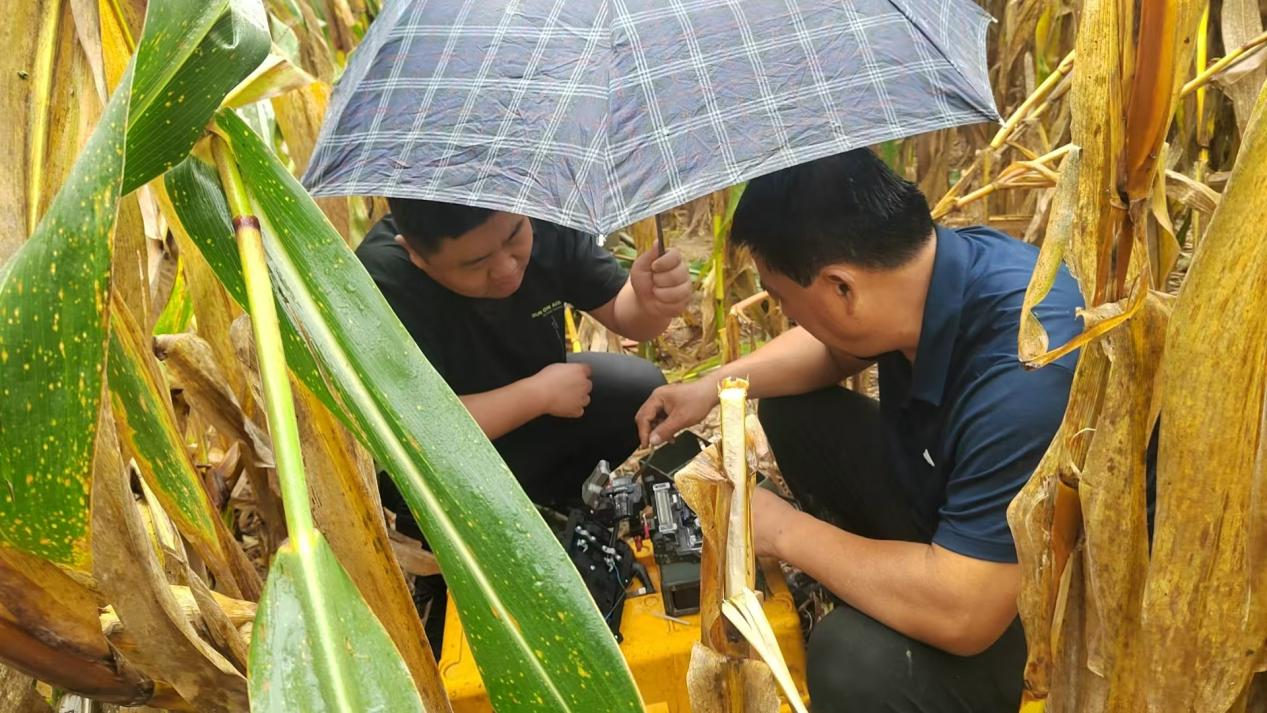 10月5日,接到被秋收農(nóng)用機(jī)械掛斷光纜的報(bào)修電話,聊城東阿縣分公司第一時(shí)間響應(yīng),完成修復(fù),保障網(wǎng)絡(luò)暢通。圖為魚山網(wǎng)格經(jīng)理董延瑞(左)搶修魚山鎮(zhèn)大劉村主干光纜。