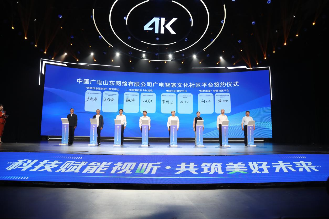 活動(dòng)專門設(shè)置了中國廣電山東公司簽約環(huán)節(jié),濟(jì)南、淄博、濰坊等市縣公司與基層黨委政府、融媒體中心就濟(jì)南市中區(qū)舜玉路街道舜園社區(qū)、天橋區(qū)制錦市街道“百年制錦”、濟(jì)陽區(qū)新市鎮(zhèn)“走進(jìn)新市”、萊蕪區(qū)鳳城街道吳花園社區(qū)“簫韻傳承跟黨走”、淄博市淄川區(qū)融媒體“家在淄川”、臨淄區(qū)稷下街道“紅潤稷下 黨建云屏”、濰坊市奎文區(qū)北海路街道南湖社區(qū)“魅力南湖”、昌邑市飲馬鎮(zhèn)“廣電賦能數(shù)字鄉(xiāng)村建設(shè)”等8個(gè)文化社區(qū)平臺(tái)建設(shè)進(jìn)行了簽約。