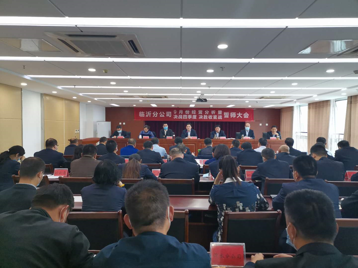 本網(wǎng)訊 10月13日,臨沂分公司召開9月經(jīng)分會暨“決戰(zhàn)四季度 決勝收官戰(zhàn)”誓師大會,深入分析公司前三季度形勢,研究部署下一階段重點(diǎn)工作,進(jìn)一步動員公司上下明確目標(biāo)定位,堅定必勝信心,決戰(zhàn)四季度,決勝收官戰(zhàn),確保全面完成年度任務(wù)目標(biāo)。
